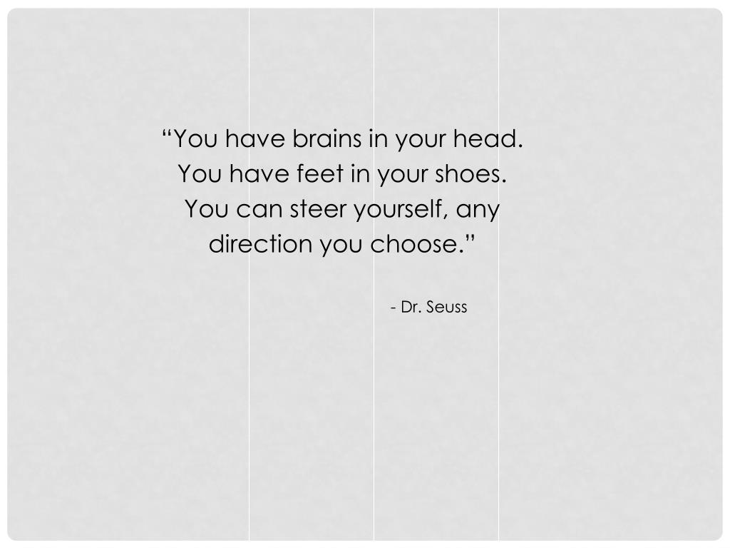 “You have brains in your head. • You have feet in your shoes. • You can steer yourself, any • direction you choose.” • - Dr. Seuss