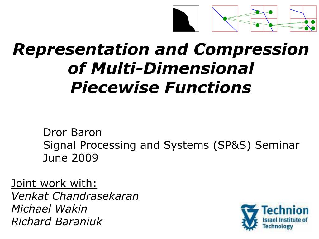 Representation and Compression of Multi-Dimensional Piecewise Functions Dror Baron Signal Processing and Systems (SP&S) Seminar June 2009 Joint work with: Venkat Chandrasekaran Michael Wakin Richard Baraniuk