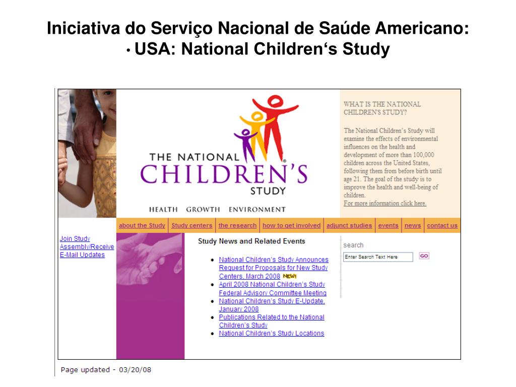 Iniciativa do Serviço Nacional de Saúde Americano: • USA: National Children‘s Study