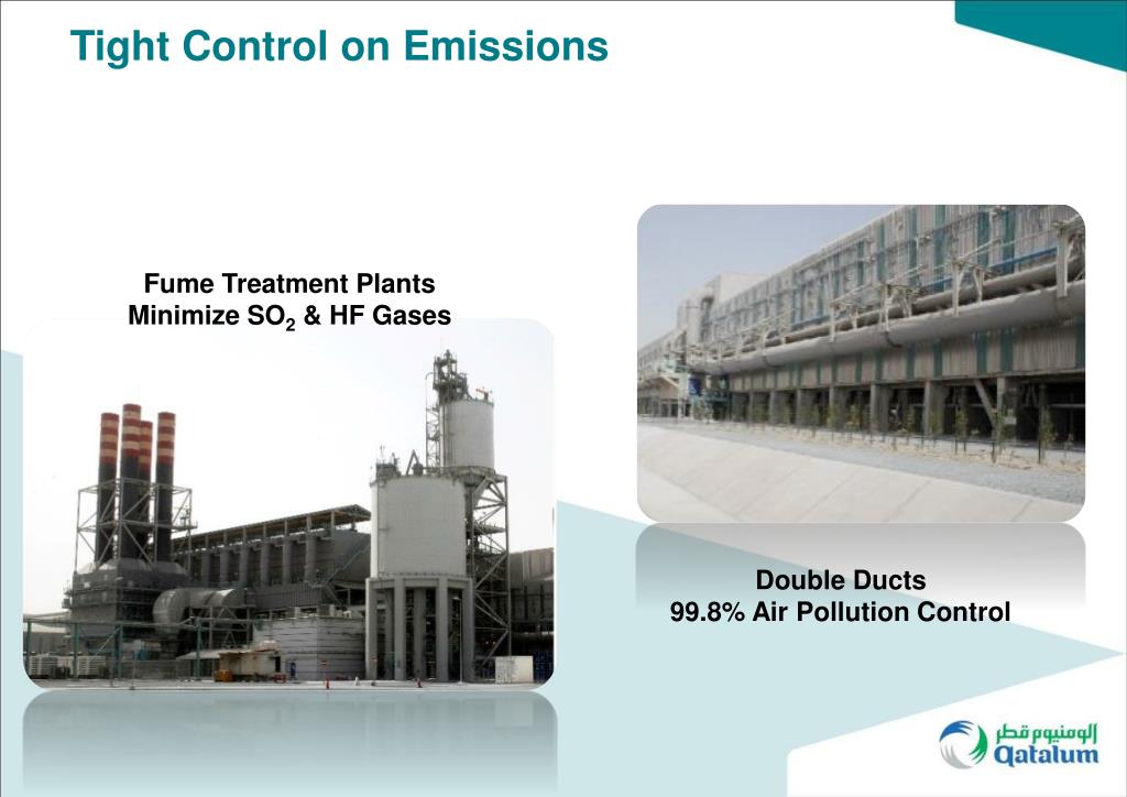 Tight Control on Emissions Fume Treatment Plants Minimize SO2 & HF Gases Double Ducts 99.8% Air Pollution Control