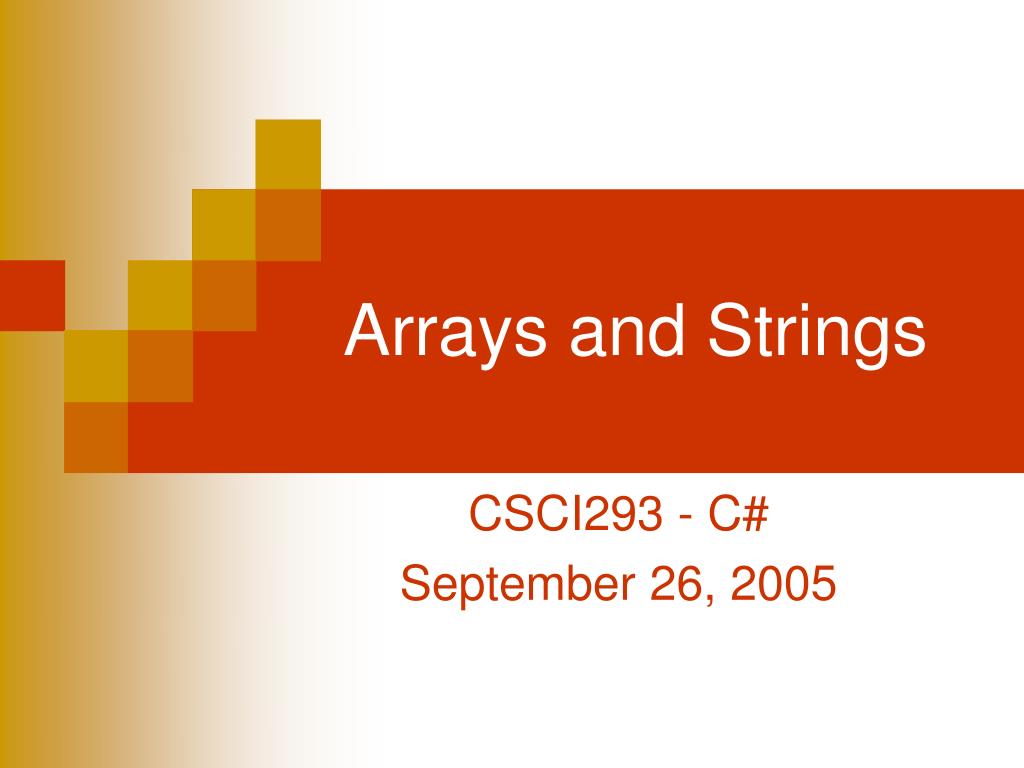 Arrays and Strings CSCI293 - C# September 26, 2005