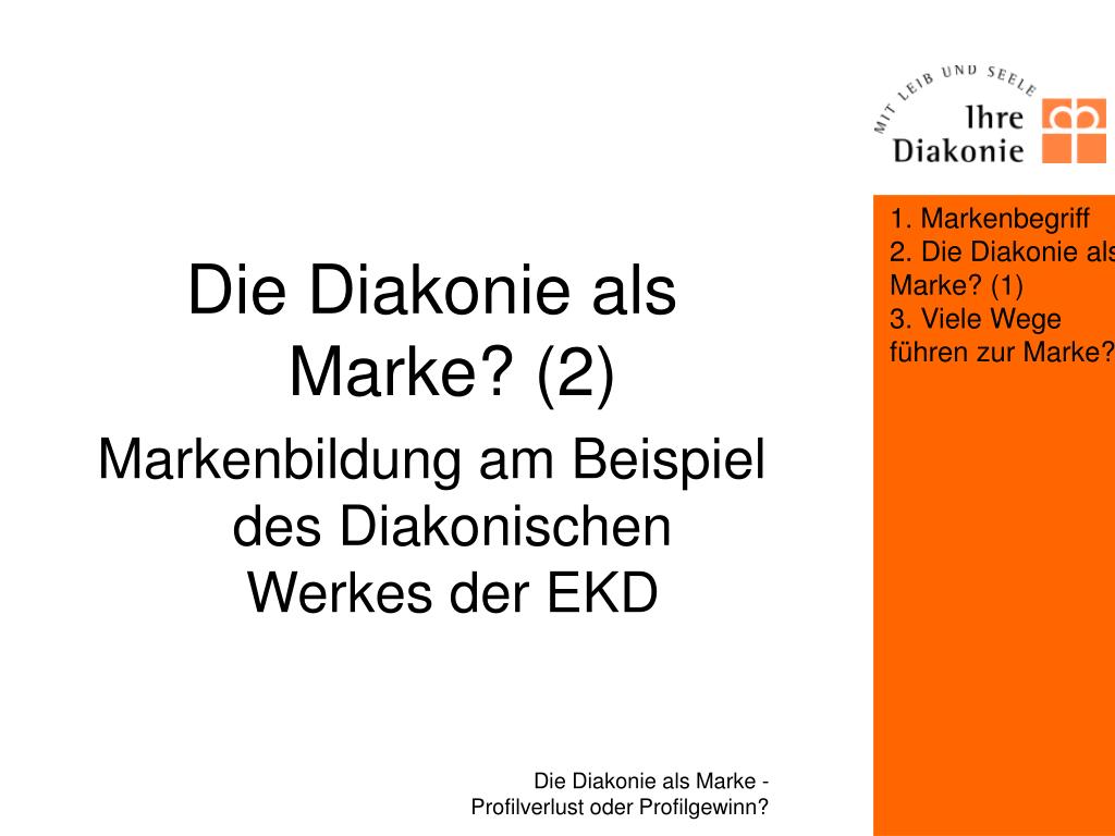 1. Markenbegriff 2. Die Diakonie als Marke? (1) Die Diakonie als Marke - Profilverlust oder Profilgewinn?