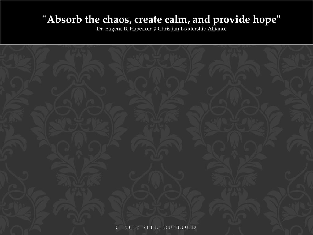 "Absorb the chaos, create calm, and provide hope"Dr. Eugene B. Habecker @ Christian Leadership Alliance c. 2012 SpellOutloud