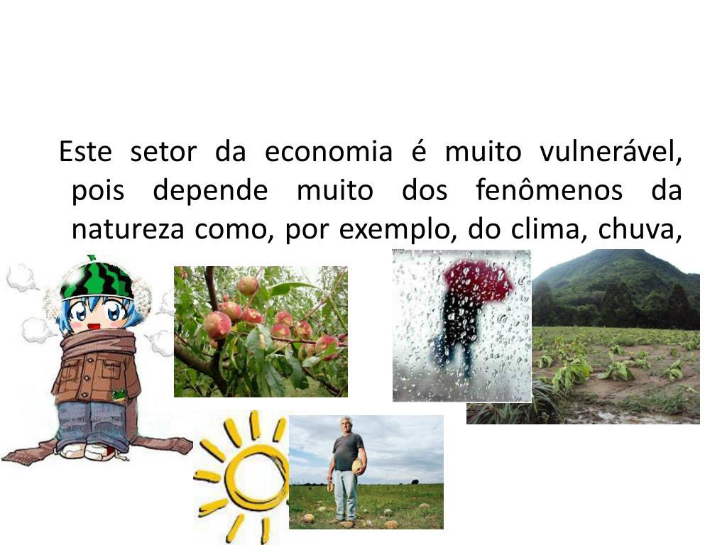 Este setor da economia é muito vulnerável, pois depende muito dos fenômenos da natureza como, por exemplo, do clima, chuva, sol, vento.