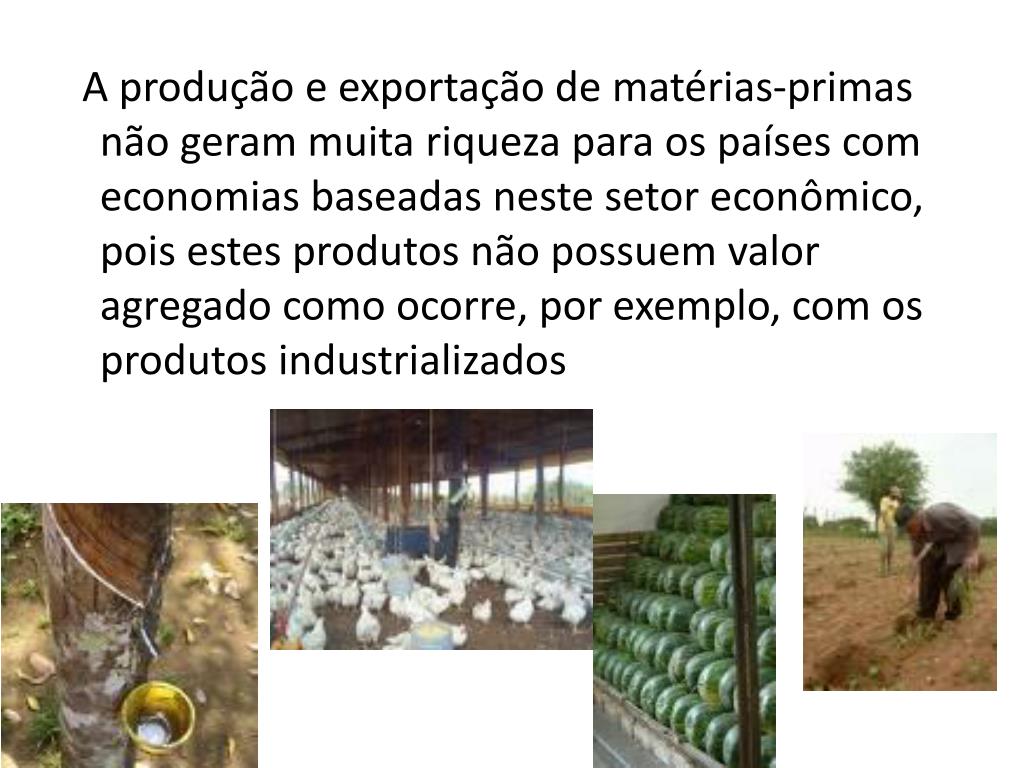 A produção e exportação de matérias-primas não geram muita riqueza para os países com economias baseadas neste setor econômico, pois estes produtos não possuem valor agregado como ocorre, por exemplo, com os produtos industrializados