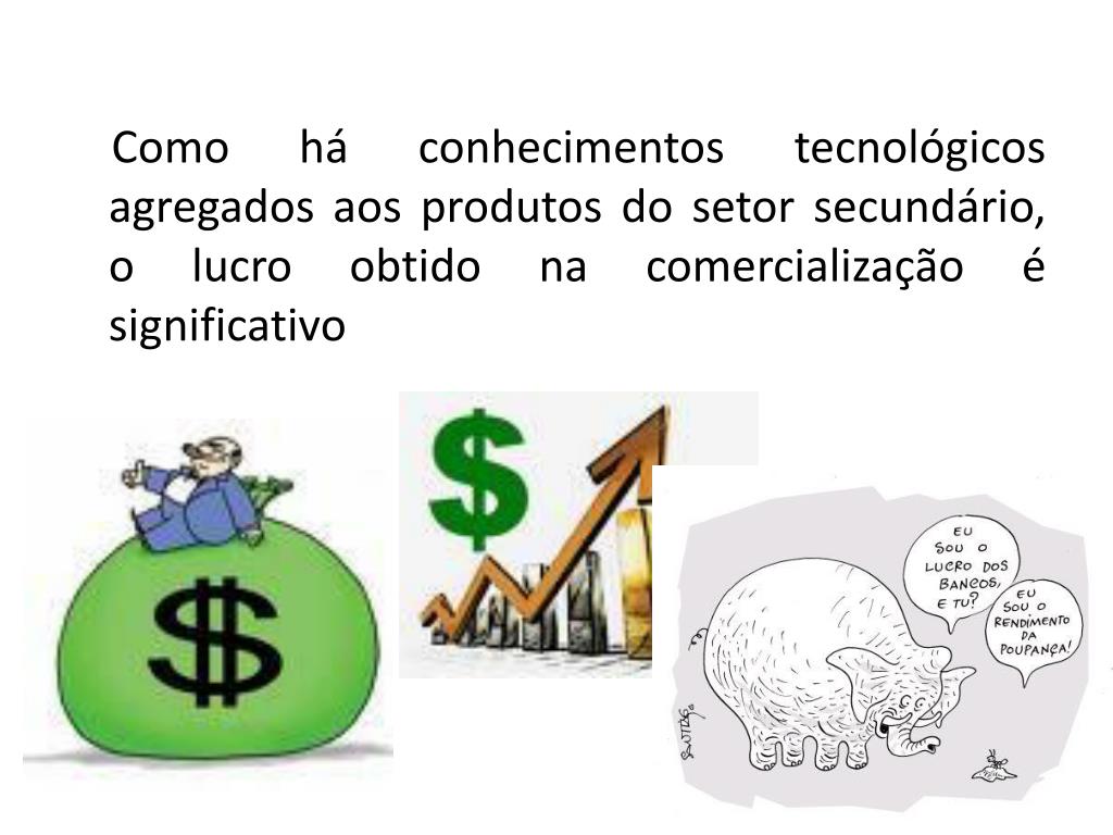 Como há conhecimentos tecnológicos agregados aos produtos do setor secundário, o lucro obtido na comercialização é significativo