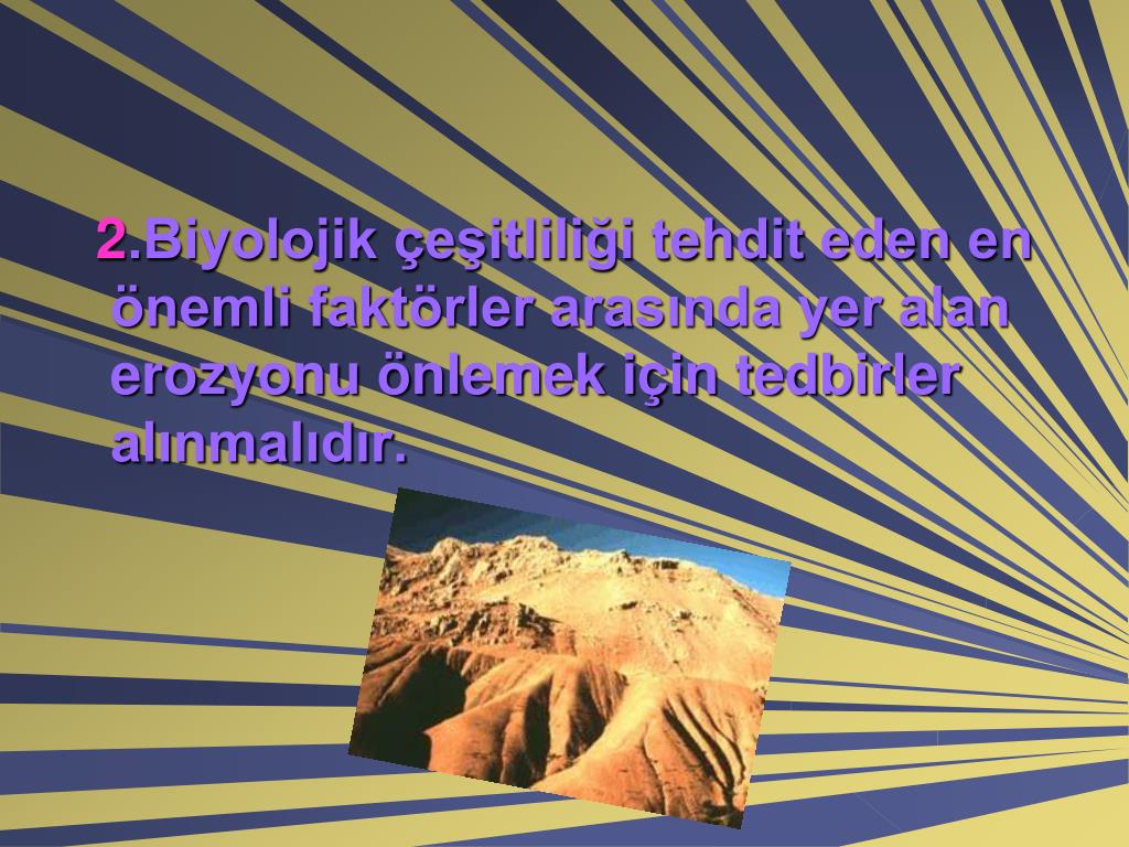 2.Biyolojik çeşitliliği tehdit eden en önemli faktörler arasında yer alan erozyonu önlemek için tedbirler alınmalıdır.