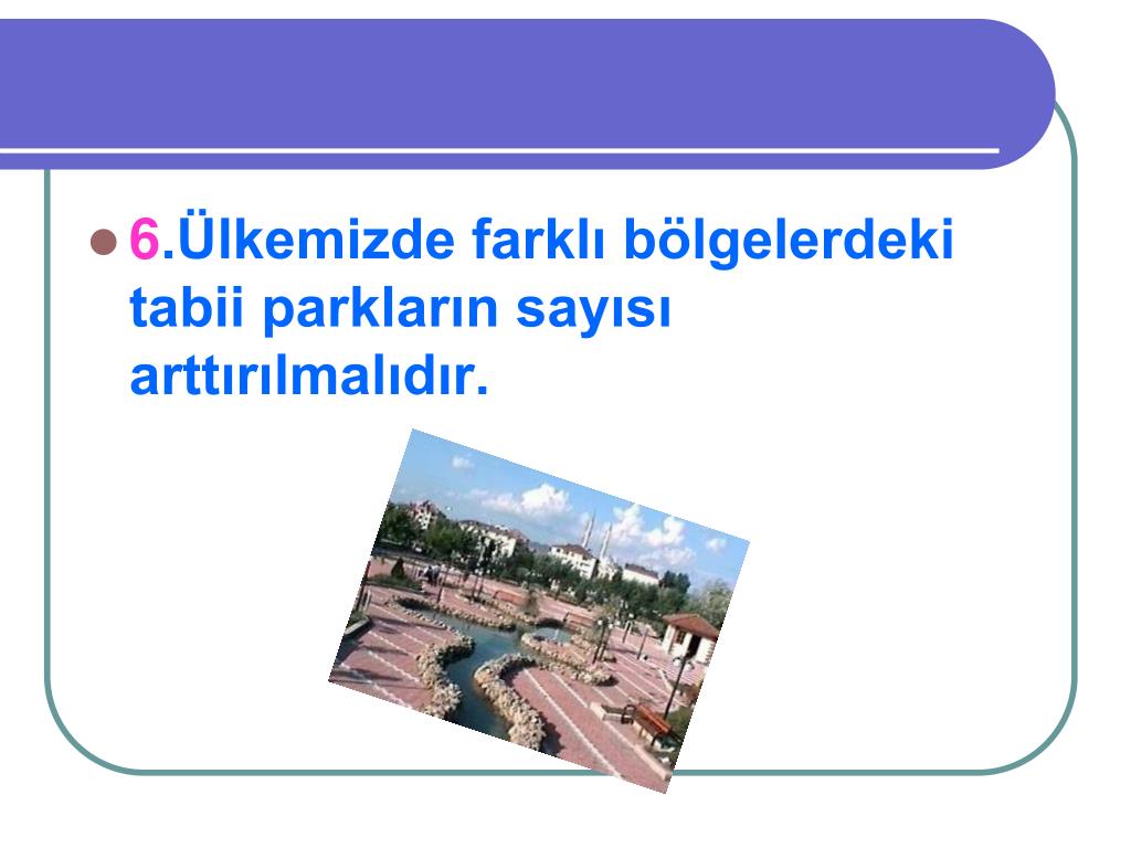 6.Ülkemizde farklı bölgelerdeki tabii parkların sayısı arttırılmalıdır.