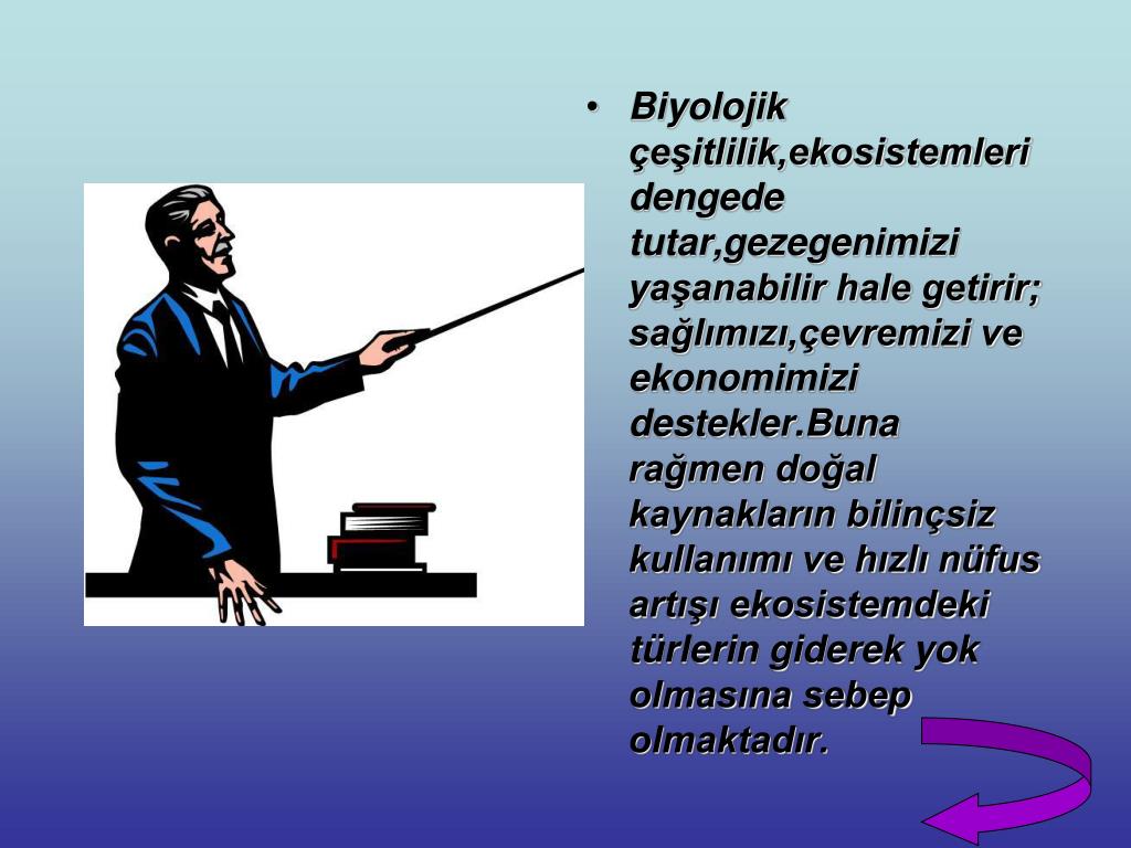 BİYOLOJİK ÇEŞİTLİLİĞİ TEHDİT EDEN BAZI FAKTÖRLER • 1.Çayır-mera ve yaylaların aşırı otlatılması • 2.Erozyon • 3.Makineli tarıma geçme • 4.Tarımda düzensiz ve aşırı şekilde zirai ilaç kullanma • 5.Sulak alanların kurutulması • 6.Barajlar ve şehirleşme • 7.Küresel ısınma • 8.Ev sanayi artıkları • 9.Aşırı avlama yapılması