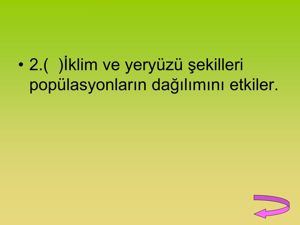 2.( )İklim ve yeryüzü şekilleri popülasyonların dağılımını etkiler.