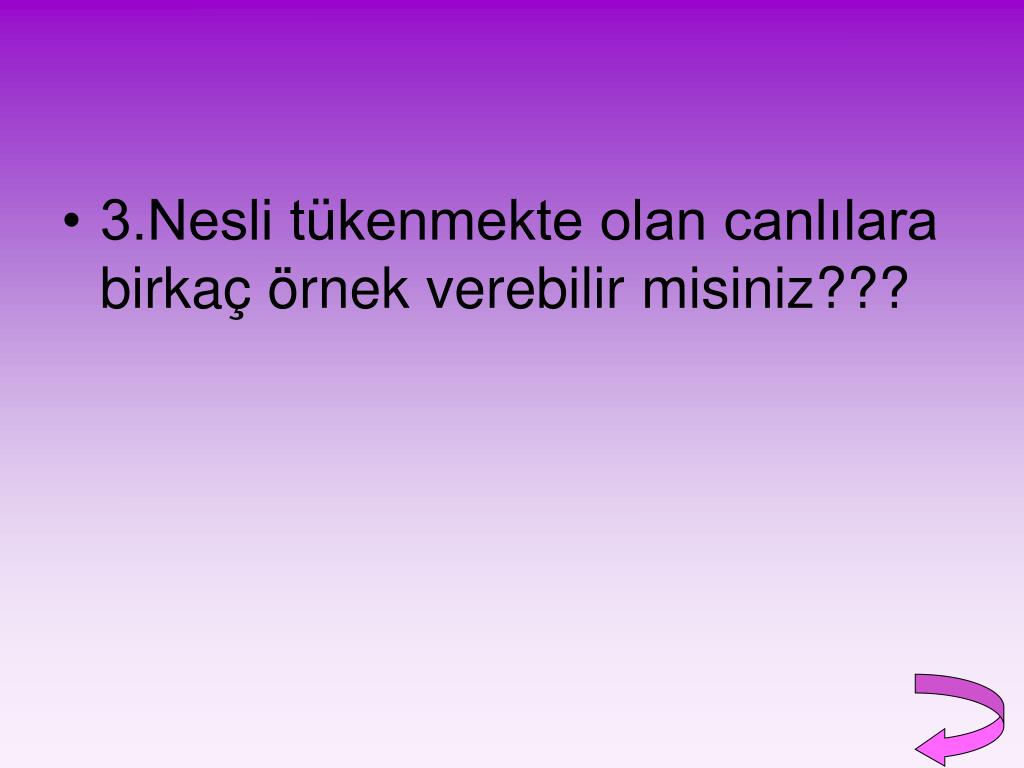 3.Nesli tükenmekte olan canlılara birkaç örnek verebilir misiniz???