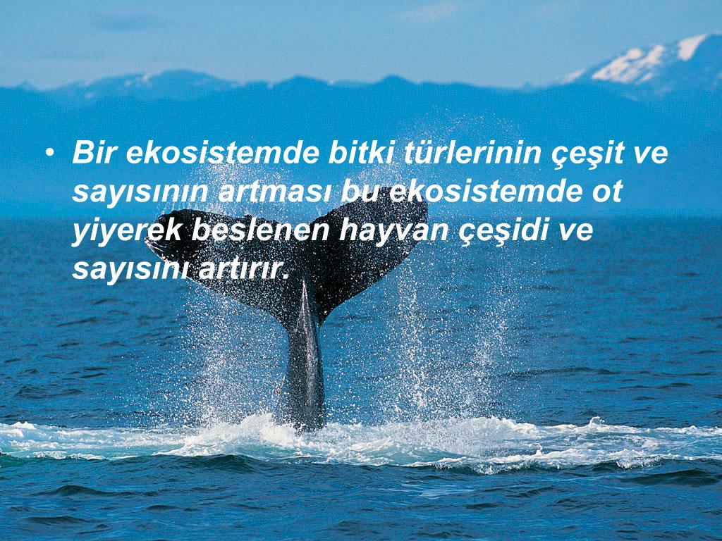 Bir ekosistemde bitki türlerinin çeşit ve sayısının artması bu ekosistemde ot yiyerek beslenen hayvan çeşidi ve sayısını artırır.