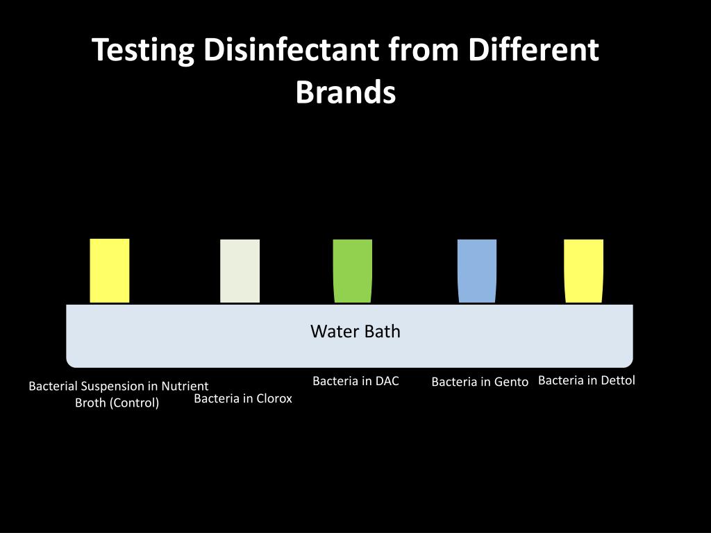 Evaluating a disinfectant • Direct spray method. • Testing the quality of disinfectant from different brands.