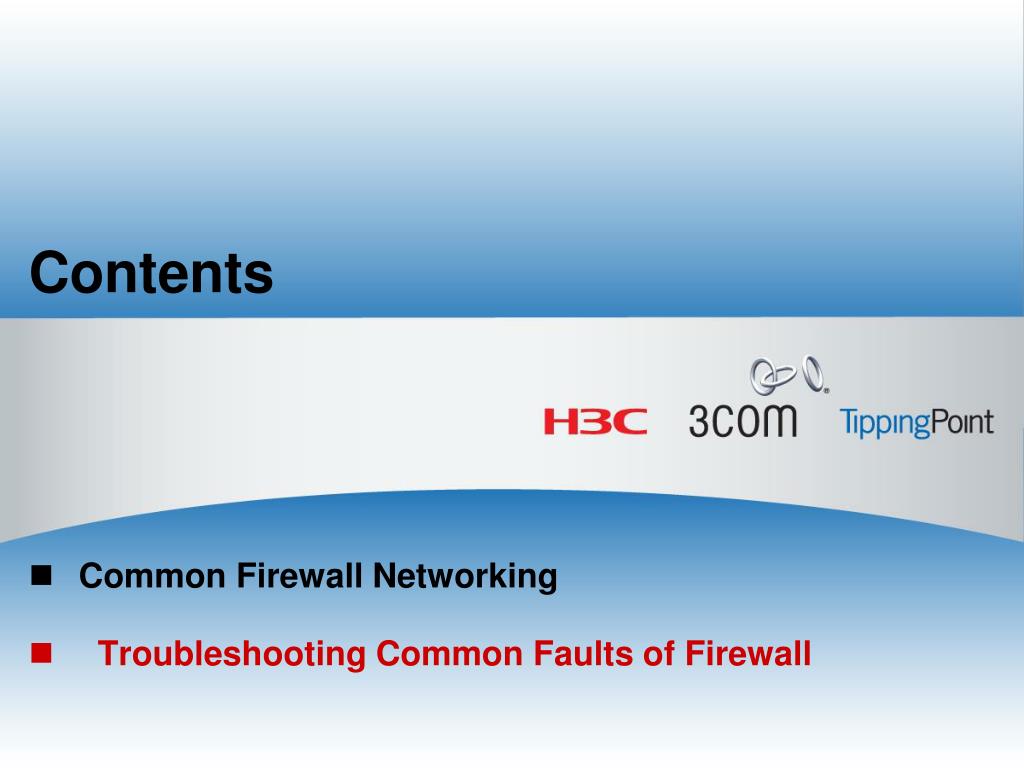 Contents Common Firewall Networking Troubleshooting Common Faults of Firewall 3Com Confidential.