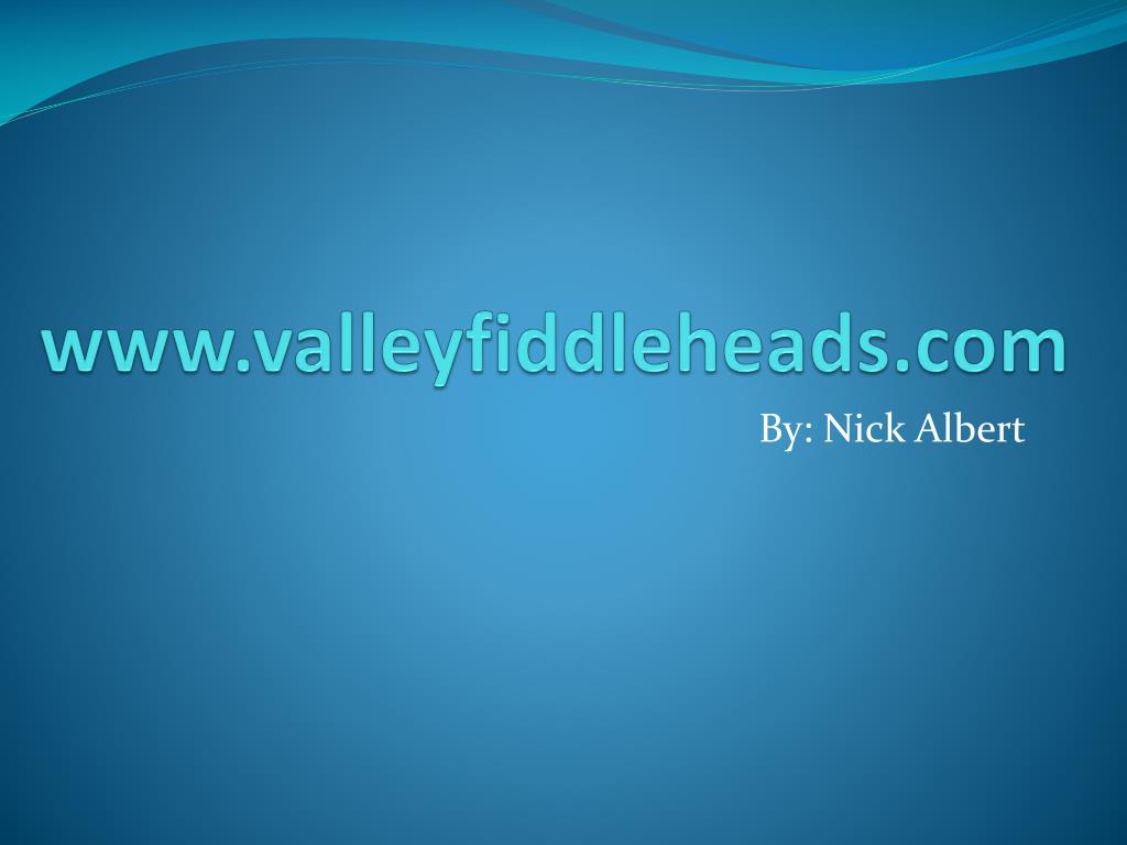 www.valleyfiddleheads.com. By: Nick Albert. Fiddleheads. Fiddleheads are a green that grows seasonally along brooks and rivers. My plan is to grow fiddleheads year round in a hydrophilic facility and market and sell over the internet.