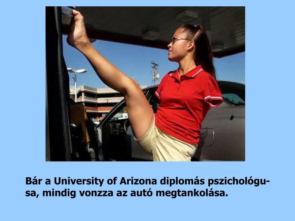 Bár a University of Arizona diplomás pszichológu-sa, mindig vonzza az autó megtankolása.