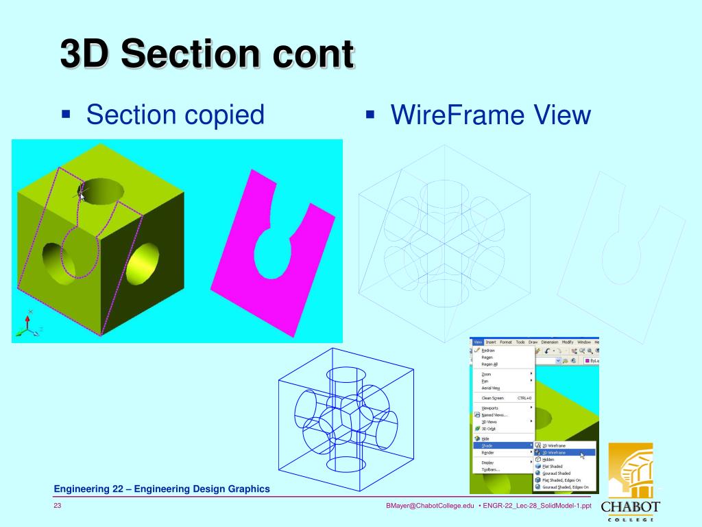 Learning Goals • Describe How AutoCAD SOLIDs differ from WireFrames and Surfaces • Create AutoCAD “Primitive” Solids • Box, Wedge, Cylinder, Sphere, etc. • Slice and Section 3D Solids • Use ACAD “Boolean” Operations to create Solids • Interfere, Union, Subtract • Combine Primitives to Make new Solids