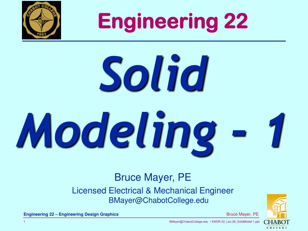 Engineering 22 SolidModeling - 1 Bruce Mayer, PE Licensed Electrical & Mechanical EngineerBMayer@ChabotCollege.edu