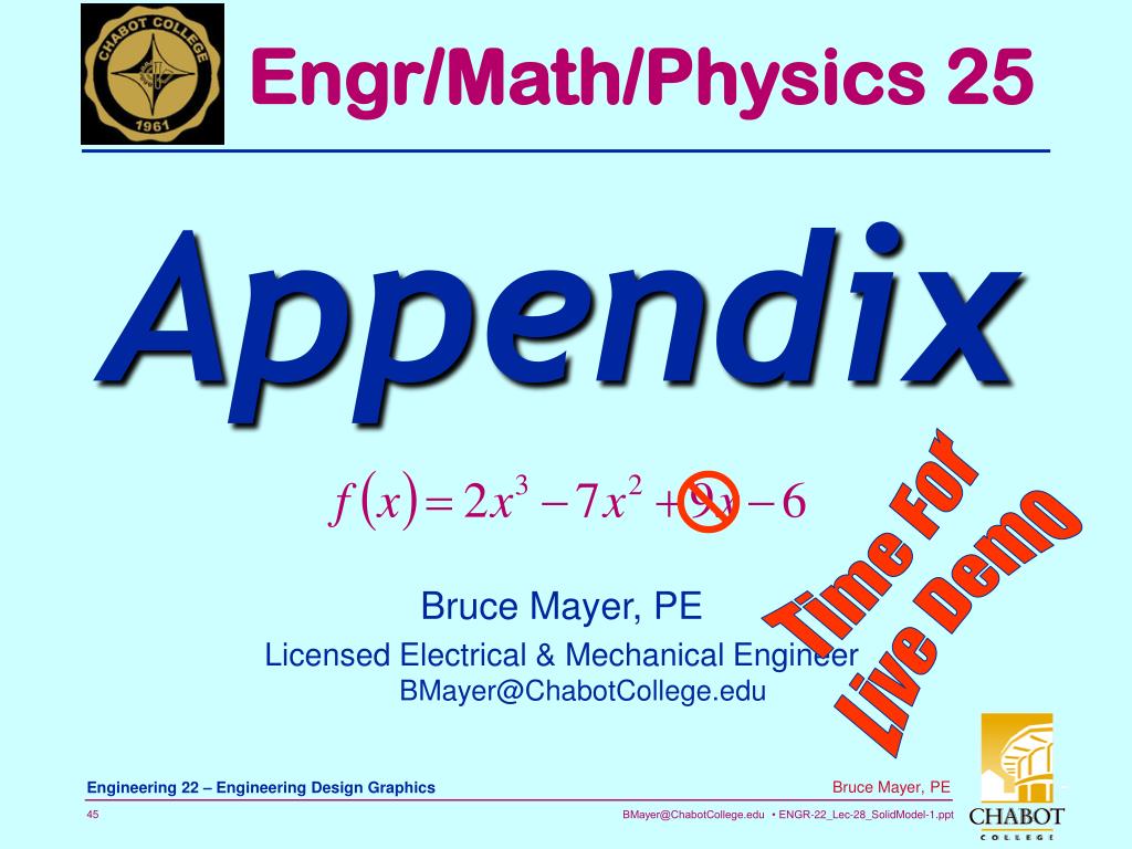 Engr/Math/Physics 25 Appendix Time For Live Demo Bruce Mayer, PE Licensed Electrical & Mechanical EngineerBMayer@ChabotCollege.edu