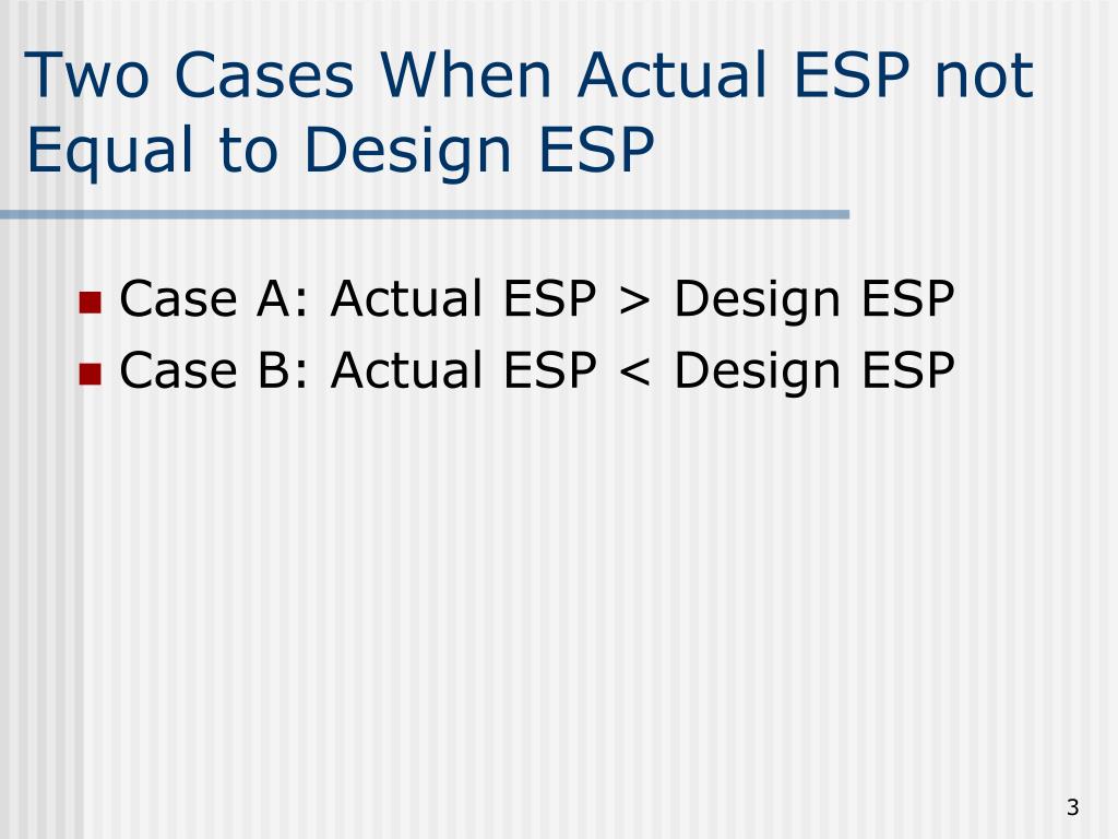 Two Cases When Actual ESP not Equal to Design ESP • Case A: Actual ESP > Design ESP • Case B: Actual ESP < Design ESP
