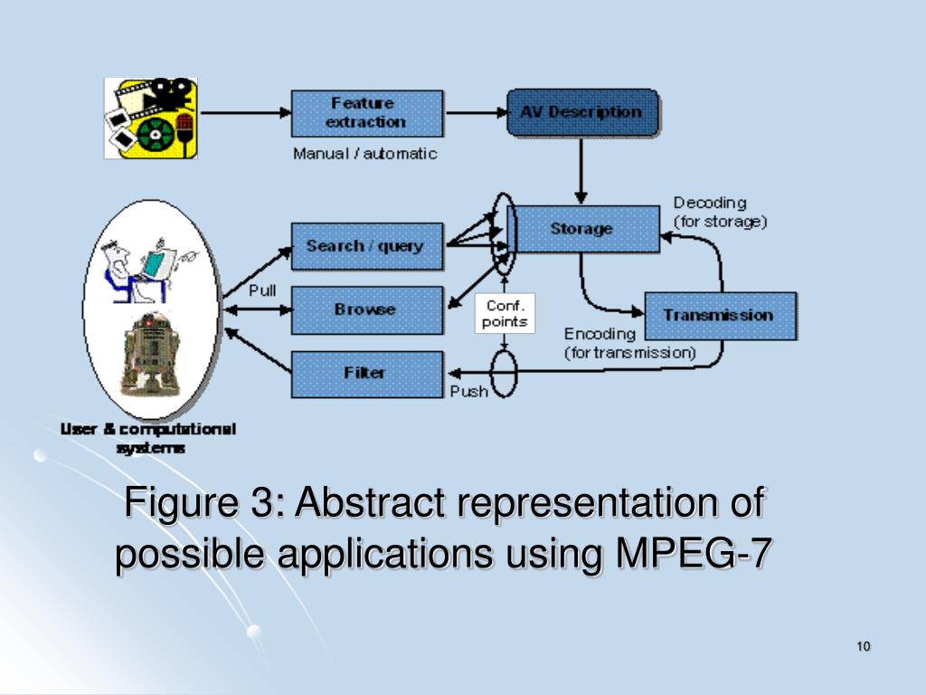 Applications • Digital libraries (image catalogue, film) • Broadcast media selection (TV channels) • Investigation services (human characteristics recognition, forensics) • Multimedia editing (personalized electronic news service) • Figure 3: Abstract Representation