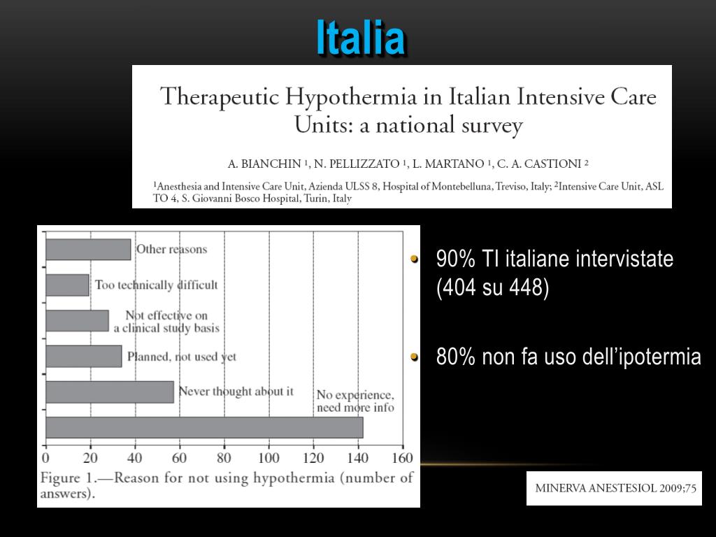 Italia 90% TI italiane intervistate (404 su 448) 80% non fa uso dell’ipotermia