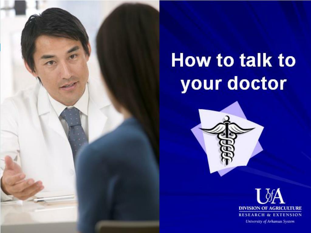 How to talk to your doctor • Describes the various specialties in medicine • Teaches Patient and doctor rights and responsibilities • Encourages patient/client to be prepared for doctors’ visits • Encourages patient/client to ask questions • Activities include role play Feeling empowered, being preparedand knowing you are 50% of your healthcare team are some of the things you will learn in this lesson.