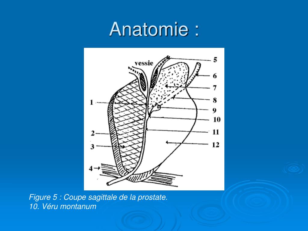 Anatomie : Figure 5 : Coupe sagittale de la prostate. 10. Véru montanum