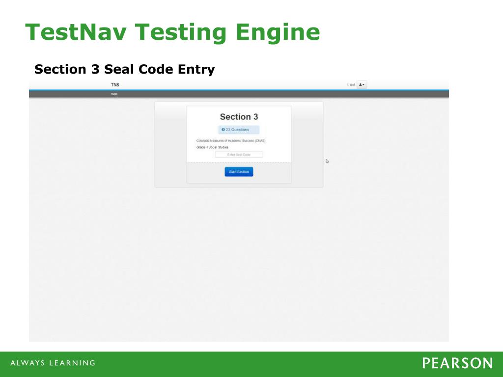 TestNav Testing Engine Section 3 Seal Code Entry
