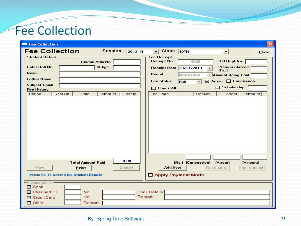Fee Collection By: Spring Time Software