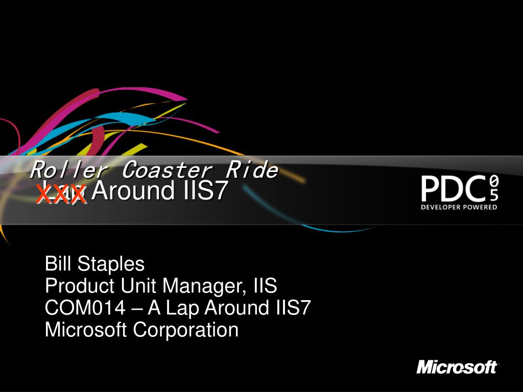 Roller Coaster Ride xxx Lap Around IIS7 Bill Staples Product Unit Manager, IIS COM014 – A Lap Around IIS7 Microsoft Corporation
