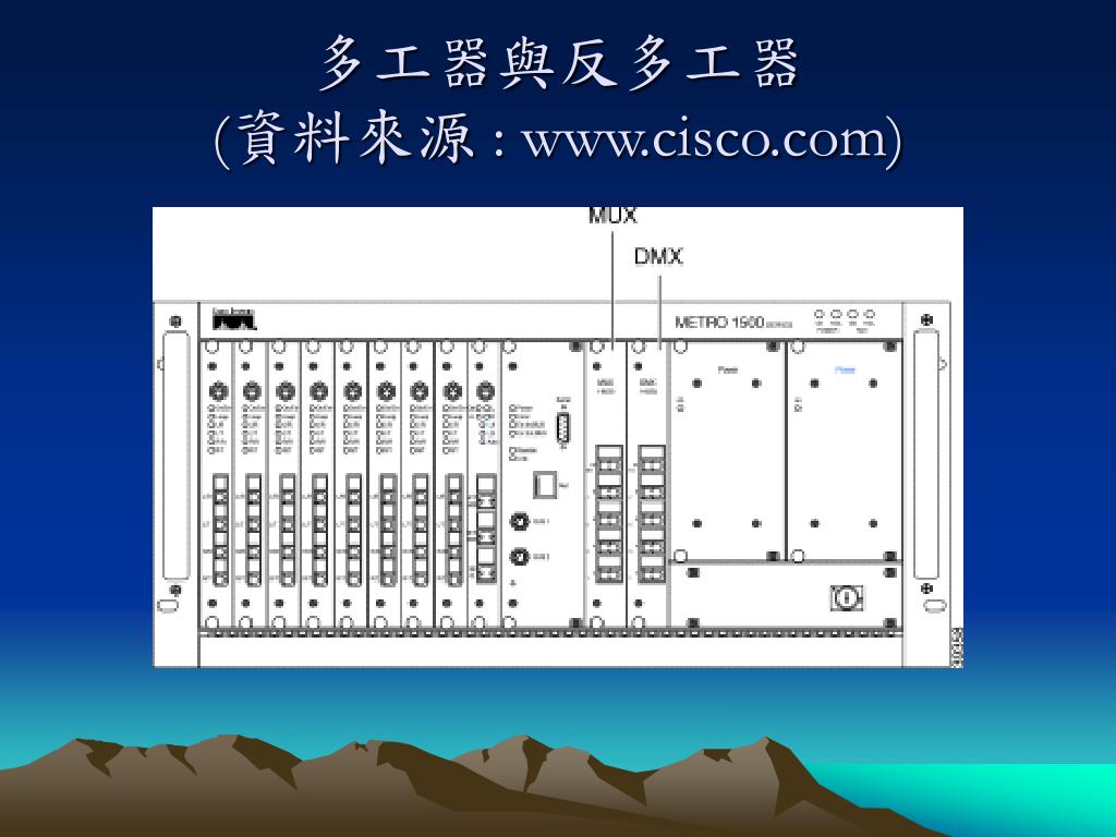 多工(multiplexing)的源起 • 頻率分割多工(FDM, Frequency Division Multiplexing) • 載波頻率高,有利於通訊介質的選擇。 • 有能量的頻率範圍寬,所以潛在頻寬高。 • 同一訊號源可承載多來源的訊號,可運用多工(multiplexing)技術。 • 時間分割多工(TDM , Time-Division Multiplexing)