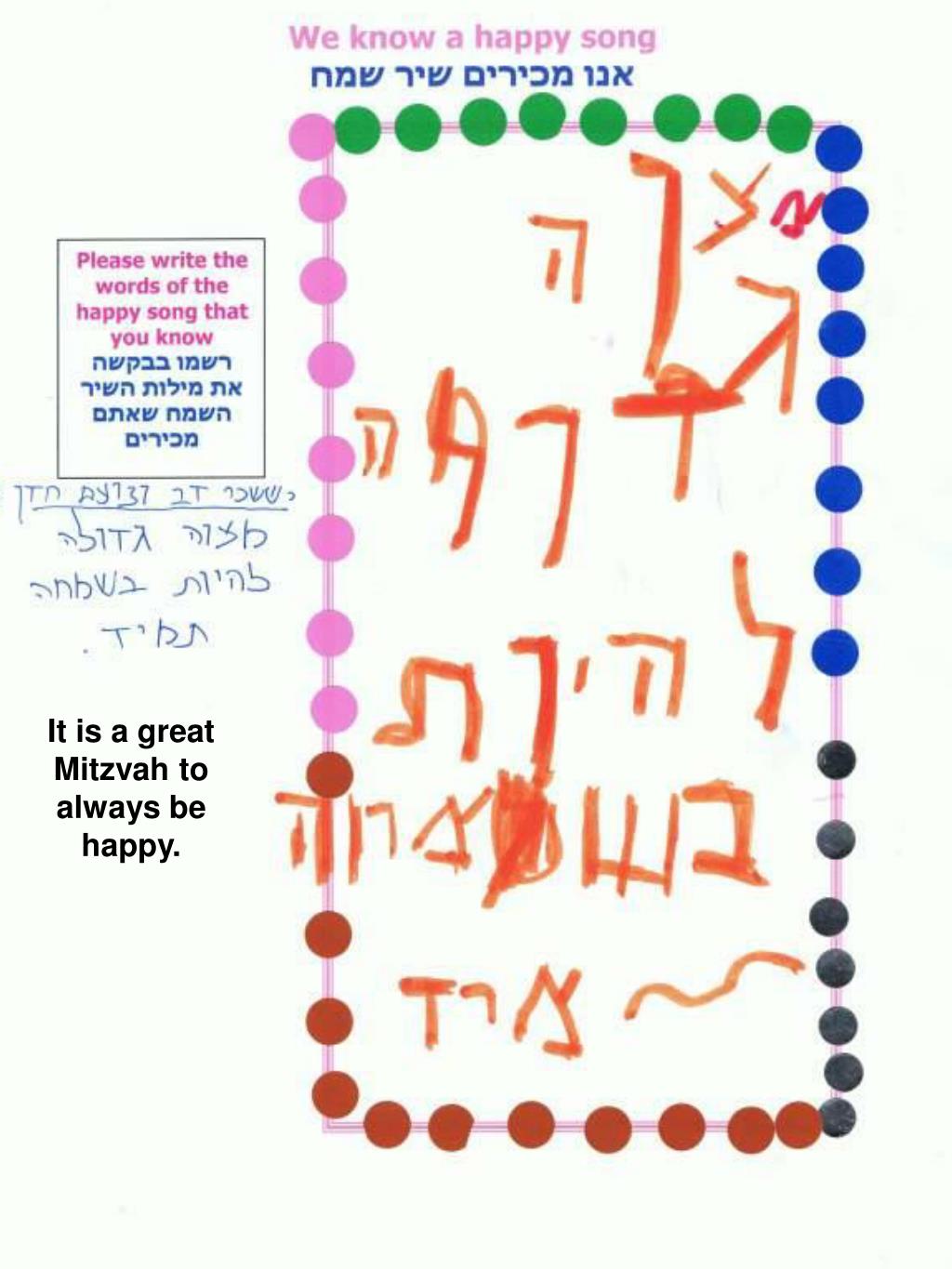“Morasha” kindergarten - Akko. Ariel: “When I played in the sand box, I gave Atara the sand which is more pleasant.”. Yeheli: “When I am sad and cry, my friend calms me down and helps me.”. The children of “Gun Morasha” visit the “Kolel” . They study Torah, dance and pray .