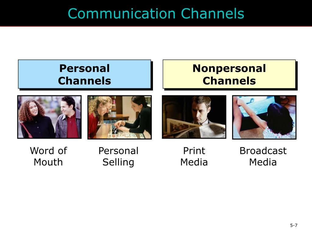 Communication Channels PersonalChannels Nonpersonal Channels Word of Mouth Personal Selling Print Media Broadcast Media