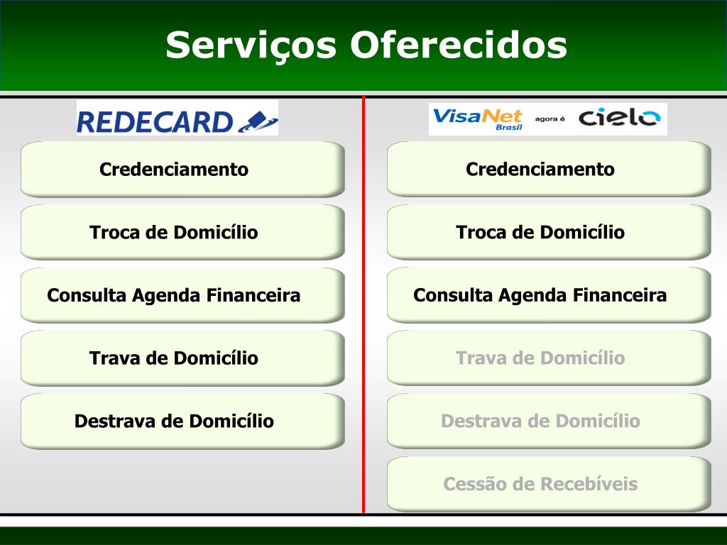 Credenciamento Troca de Domicílio Consulta Agenda Financeira Trava de Domicílio Destrava de Domicílio Credenciamento Troca de Domicílio Consulta Agenda Financeira Trava de Domicílio Destrava de Domicílio Cessão de Recebíveis Serviços Oferecidos