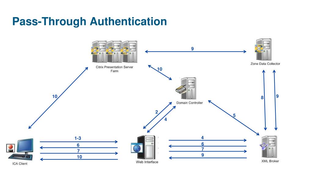 Pass-Through Authentication 9 10 9 10 8 2 5 4 4 1-3 6 6 7 7 9 10