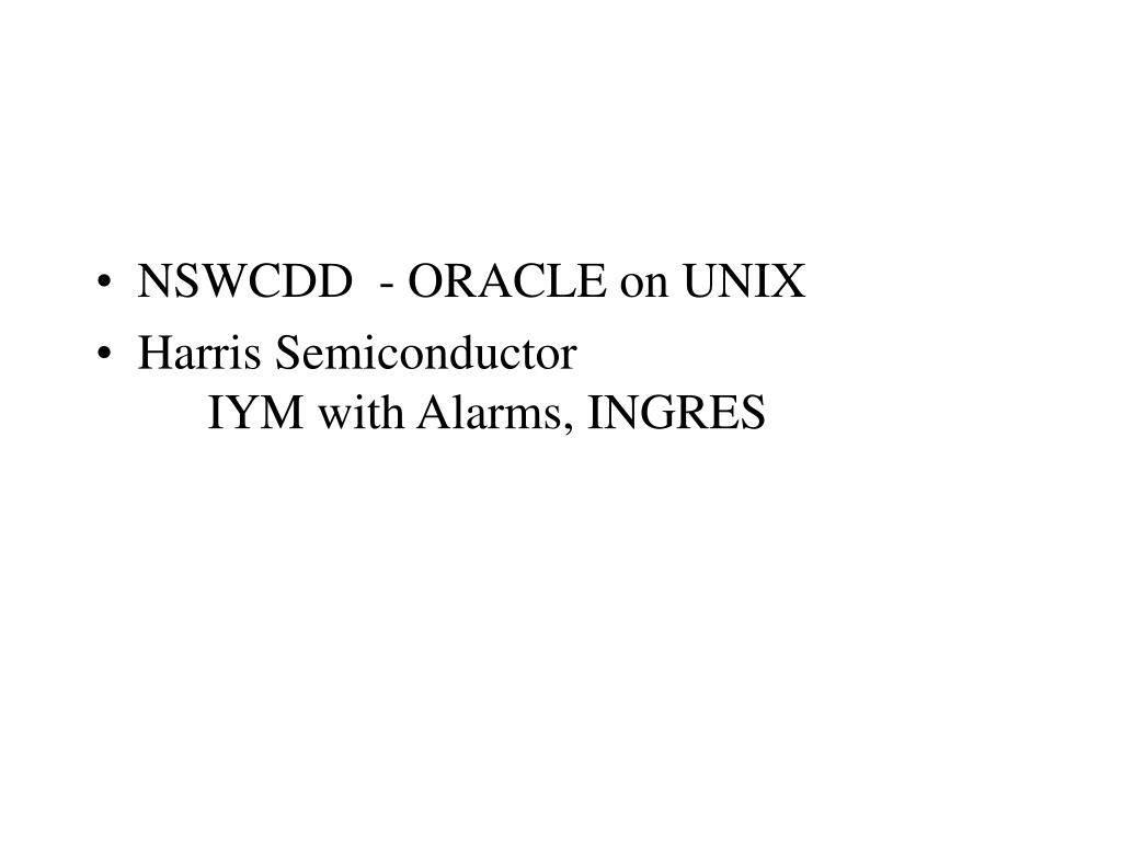 NSWCDD - ORACLE on UNIX • Harris Semiconductor IYM with Alarms, INGRES