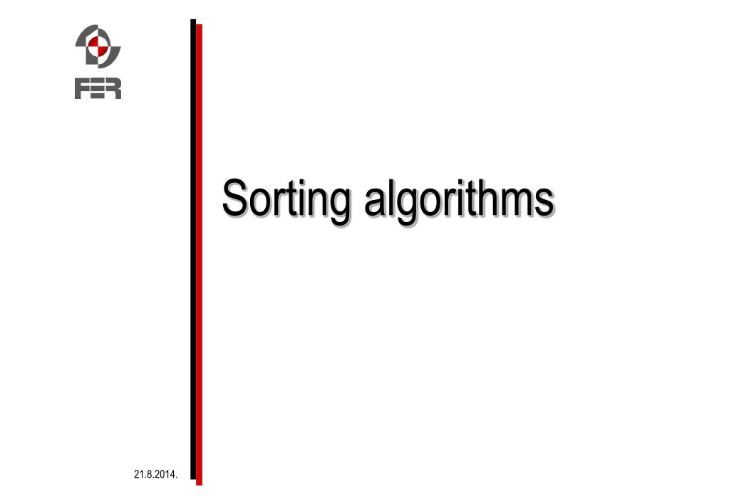 Algorithms Selected for illustration: Selection sort Bubble sort Insertion sort Shell sort Merge sort Quick sort Heap sort - later! Sortovi (Sorting) http://www.solidware.com/sort/ Algorithms and data structures, FER