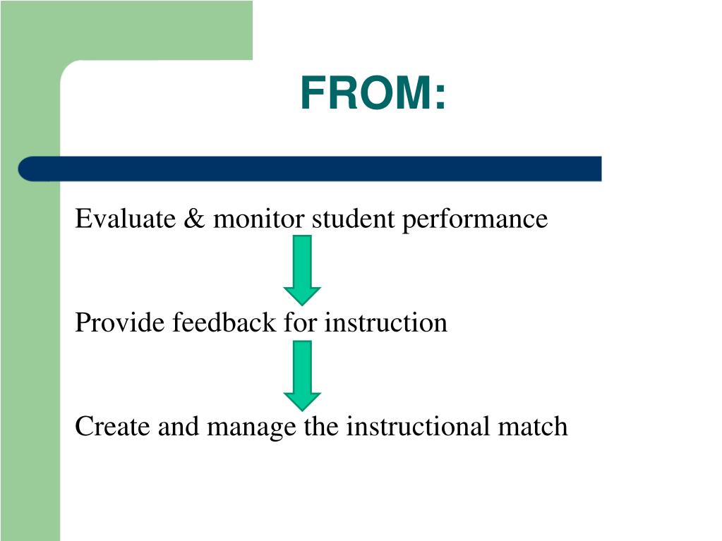 FROM: Evaluate & monitor student performance Provide feedback for instruction Create and manage the instructional match