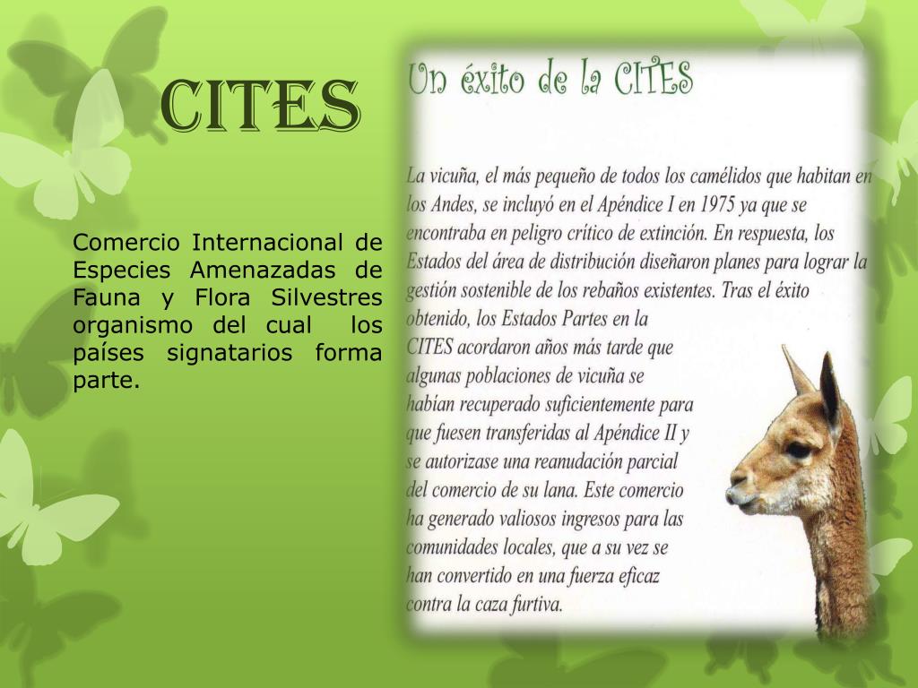 CITES Comercio Internacional de Especies Amenazadas de Fauna y Flora Silvestres organismo del cual los países signatarios forma parte.