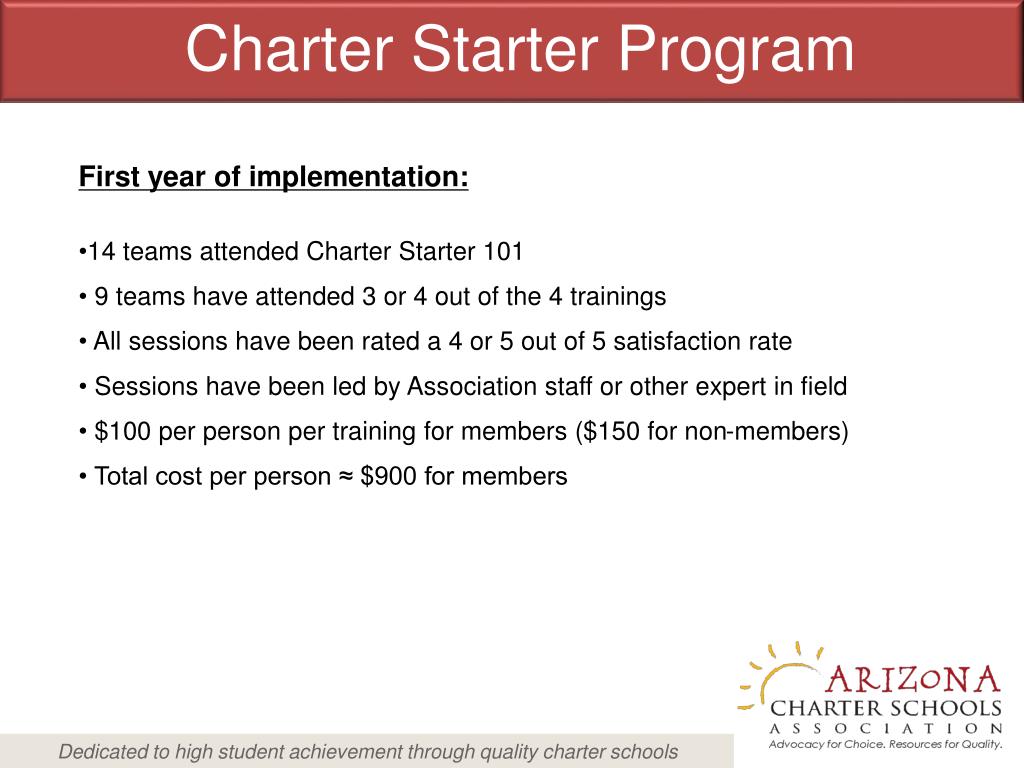 Arizona Charter Schools Association. Association Update Andrew Collins March 8, 2010. Arizona Charter Schools Association. AGENDA Charter Starter Program. Charter Starter Program. Purpose: To train and coach teams Develop a quality charter school that…