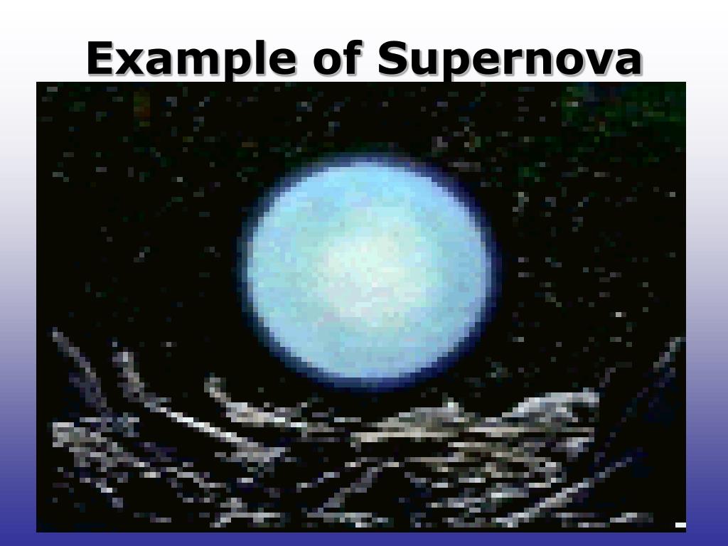 Supernova • The mass of a star collapses. • It explodes violently as seen in the animation. • The result: • Neutron Stars • Pulsars • Black Holes