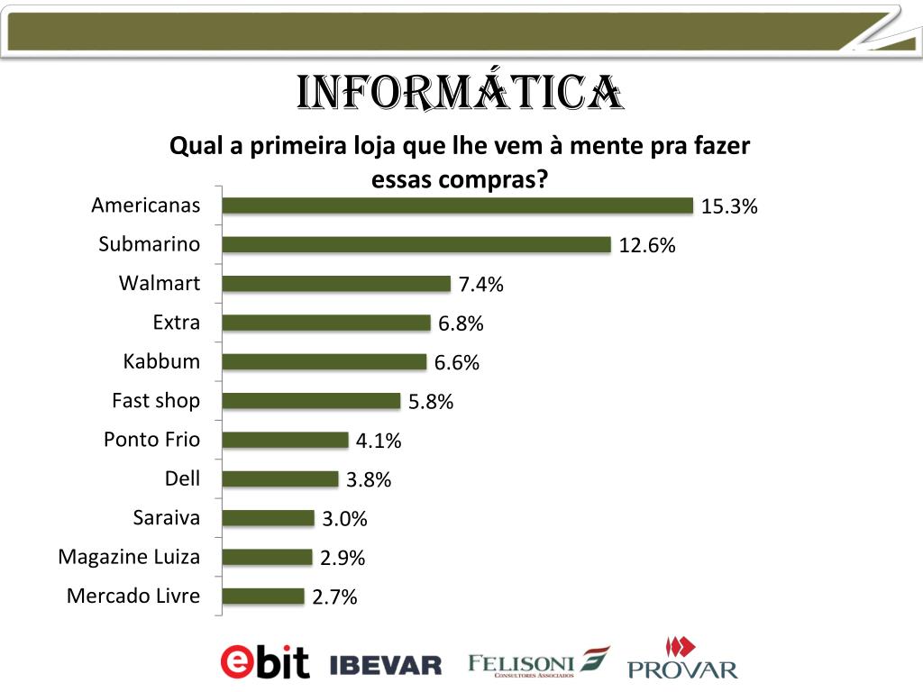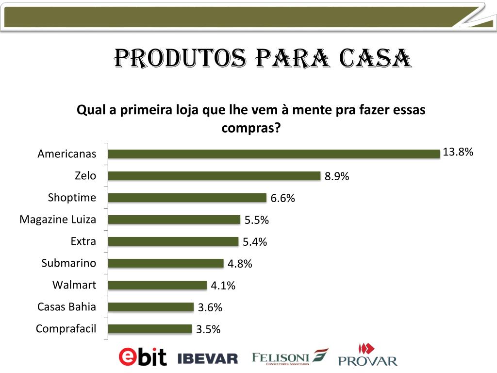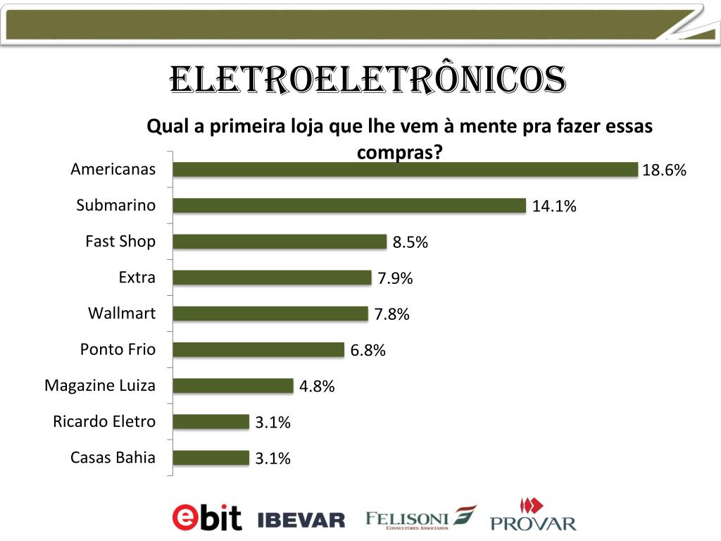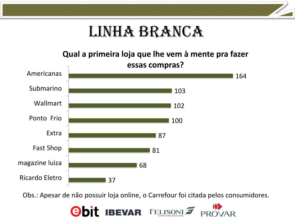 Linhabranca 14,2% 11,5% 10,0% 9,6% Obs.: Apesar de não possuir loja online, o Carrefour foi citada pelos consumidores.