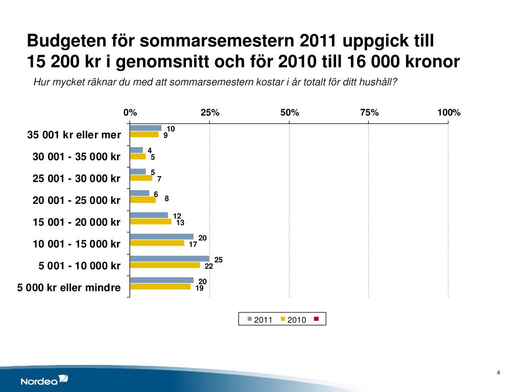 Budgeten för sommarsemestern 2011 uppgick till 15 200 kr i genomsnitt och för 2010 till 16 000 kronor Hur mycket räknar du med att sommarsemestern kostar i år totalt för ditt hushåll?