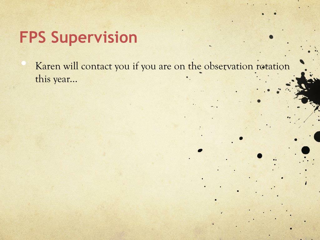 FPS Supervision • Karenwill contact you if you are on the observation rotation this year...