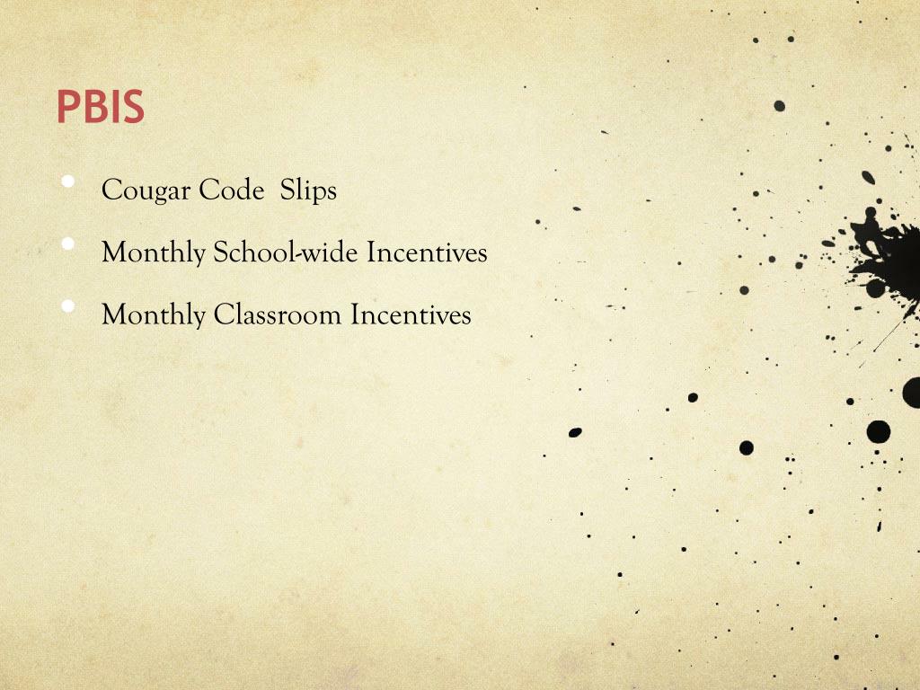 PBIS • Cougar CodeSlips • Monthly School-wide Incentives • Monthly Classroom Incentives