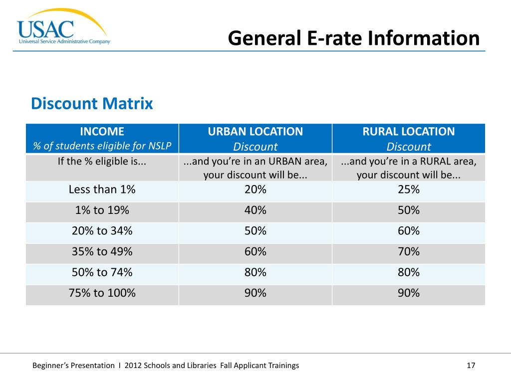 Discount Matrix • General E-rate Information
