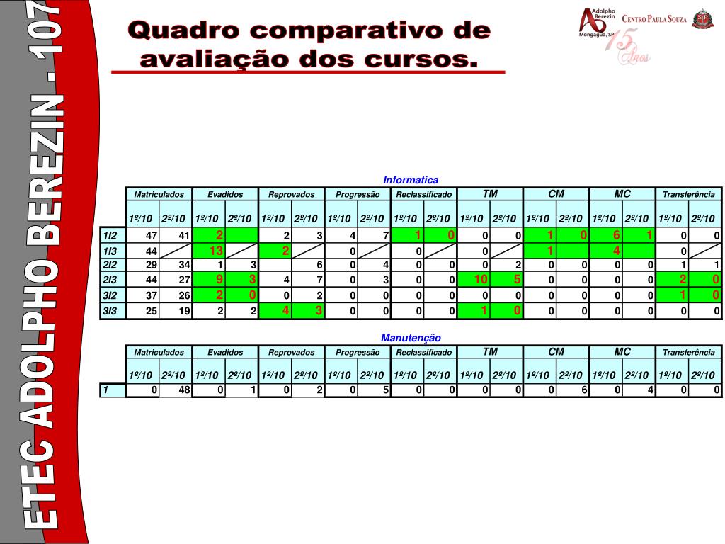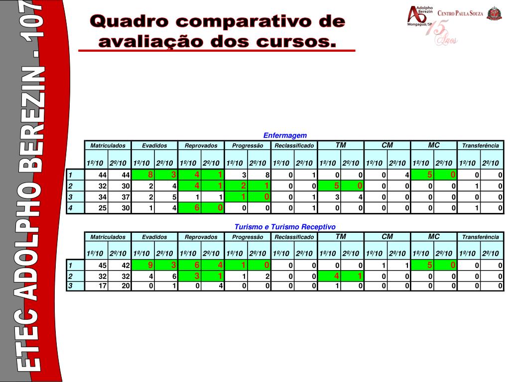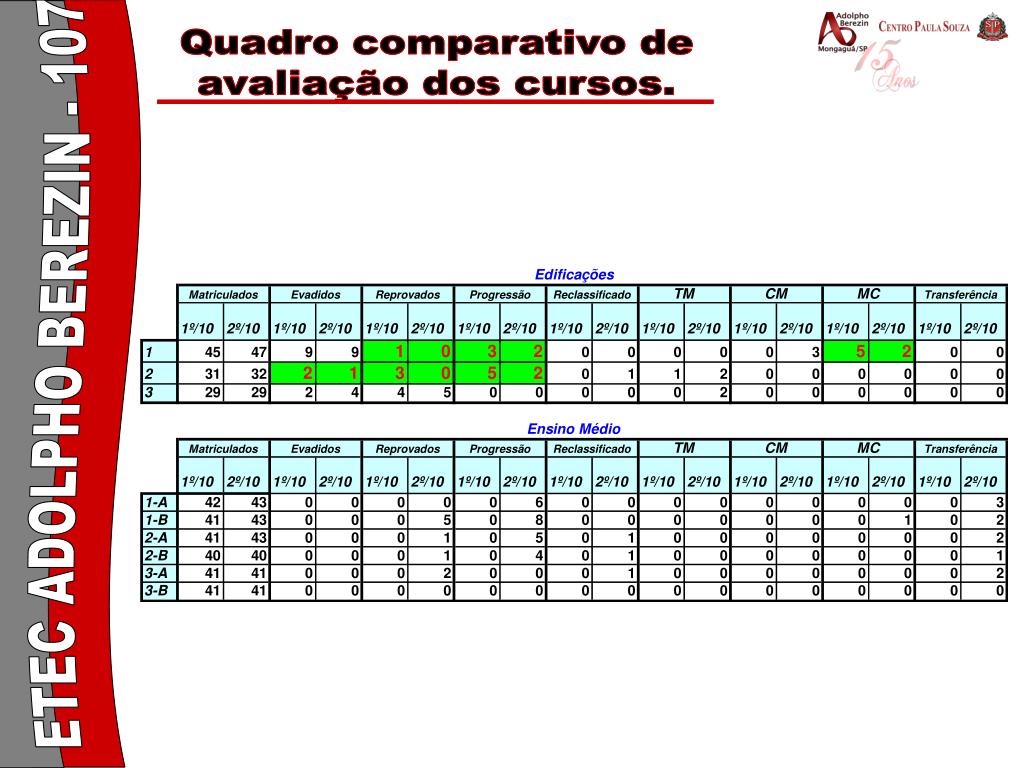 Quadro comparativo de avaliação dos cursos. Quadro comparativo de avaliação dos cursos. ETEC ADOLPHO BEREZIN - 107