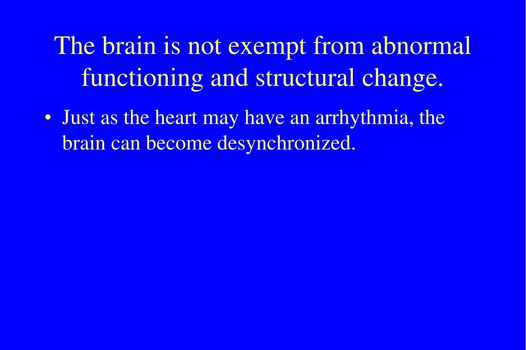 The brain is not exempt from abnormal functioning and structural change. • Just as the heart may have an arrhythmia, the brain can become desynchronized.