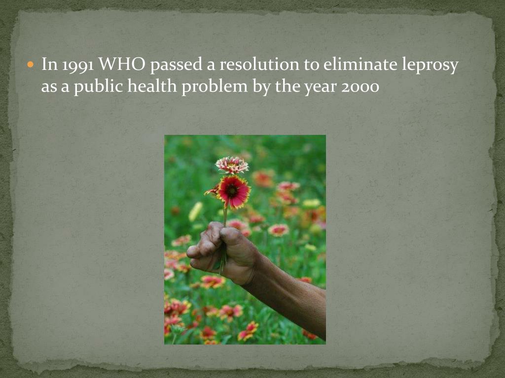 In 1991 WHO passed a resolution to eliminate leprosy as a public health problem by the year 2000